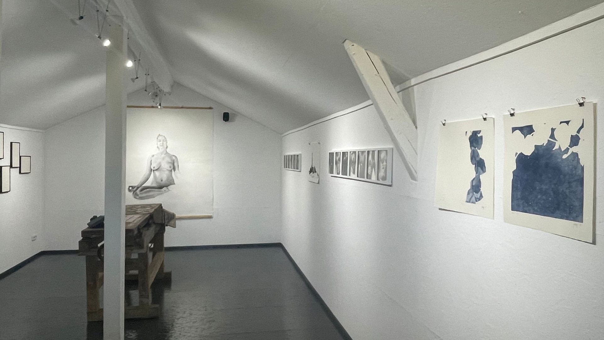 Im Kontext ihrer Werkreihe „Sexualisierung & Selbstbestimmung“ zeigt Julia in dieser Ausstellung Arbeiten aus der Serie „alles was du sehen willst…“. Hier bezieht sie sich auf klassische Darstellungen weiblicher Körper – diesmal allerdings mit von den portraitierten Frauen selbstgewählten, teilweise kämpferischen oder alternativ sehr entspannten Haltungen. Kontrastierend dazu wirken die im strengen und vielfältig assoziierbaren 20 cm-Format gefertigten Kohlezeichnungen der Reihe „It’s a match“ Abbildungen von männlichen Torsi, gefunden auf Basis einschlägiger Algorithmen von Dating-Plattformen. Auch hier drängt sich die Frage nach der Selbst-Ermächtigung der eigenen Körperdarstellung und ihrer Rezeption auf.