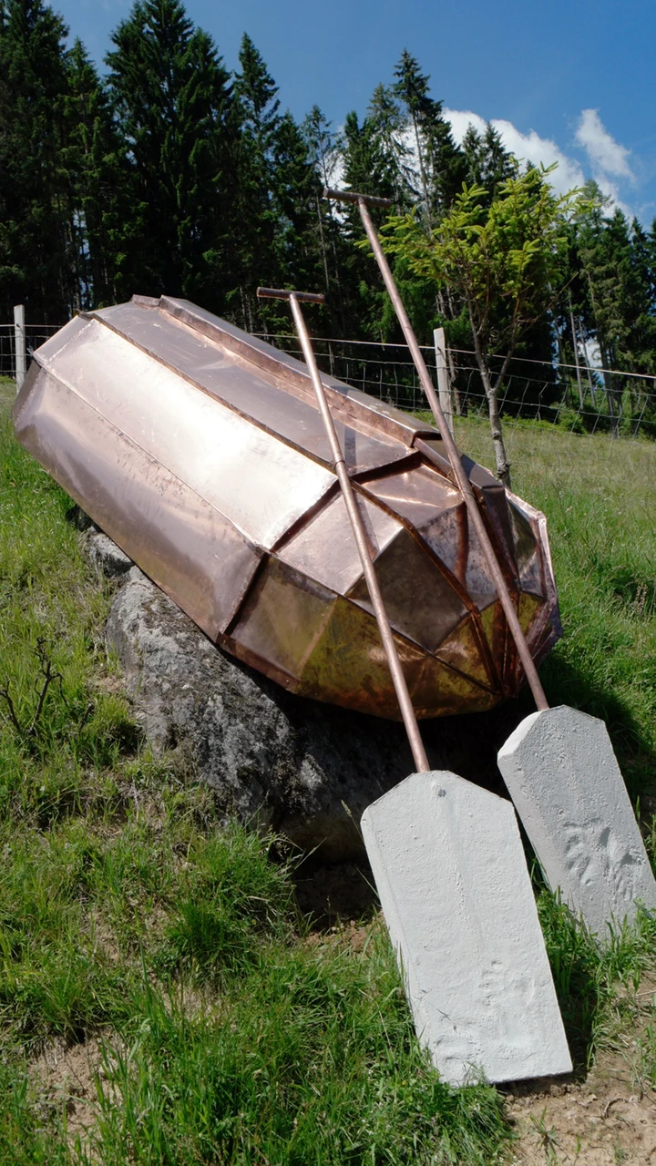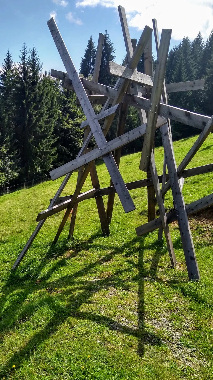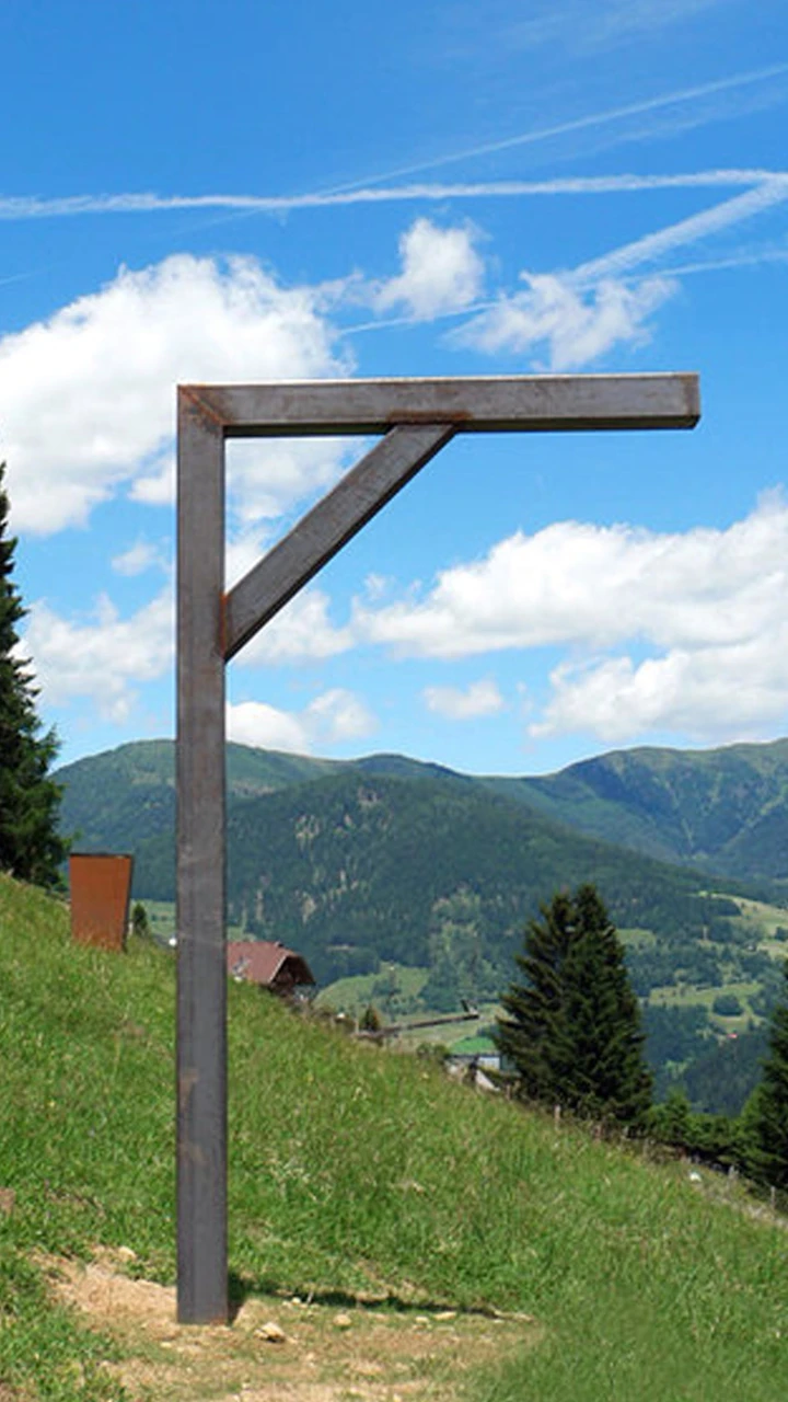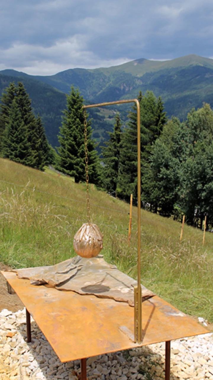| Zeitgenössische Kunst, wo man sie kaum vermutet: Inmitten der wunderbaren Landschaft der Nockberge, am Weg zur Schwarzseehütte und zum Kraftberg Mirnock gelegen, befindet sich der Skulpturenpark auf einer 16.000 qm großen Almwiese. Über 20 Skulpturen, Installationen und Interventionen können hier "im Vorbeigehen" betrachtet werden und sorgen für Inspiration und manchmal auch Irritation. Der Skulpturenpark ist naturnah angelegt und wird als Weide für die hauseigenen Kärntner Brillenschafe genutzt – festes Schuhwerk ist empfohlen, Hunde müssen bitte an der kurzen Leine geführt werden! |