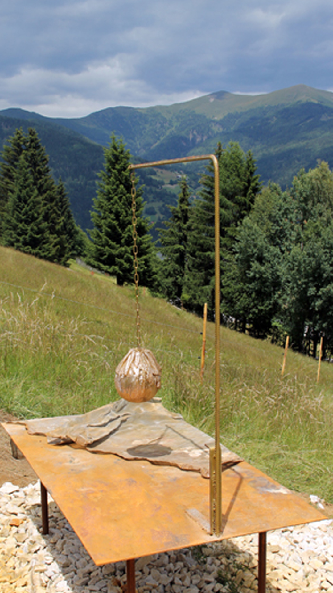 „RESTESSEN“ haben die beiden iranischen KünstlerInnen Bahar Batvand und Ramin Parvin ihr Skulpturenprojekt genannt, das sie für die art-lodge im Jahr 2015 entwickelt haben. Beide KünstlerInnen sind in ihrer Heimat durch Krieg und Repressalien geprägt worden, bis sie den Iran – unabhängig voneinander und zu unterschiedlichen Zeitpunkten – verließen. Da das gemeinsame Essen in der iranischen Tradition einen hohen Stellenwert hat, steht der Titel „restessen“ für den wahrscheinlich unwiederbringlichen Verlust der Heimat oder für die verbliebenen, jungen und politisch aktiven IranerInnen zumindest für den Verlust von Einfluss und Entfaltungsmöglichkeiten.